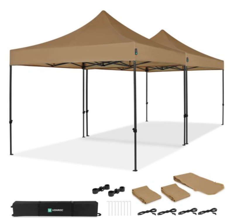 Nr. 9 Beste partytenten: VONROC Easy-Up Partytent – 6x3 m – Premium easy-up Partytent - Set incl. 2x Tent en 1x Koppel-systeem - Modulair Ontwerp – Opvouwbaar – Waterdicht – Stalen Frame - 50+ UV Bescherming - Incl. Opbergtassen – Beige