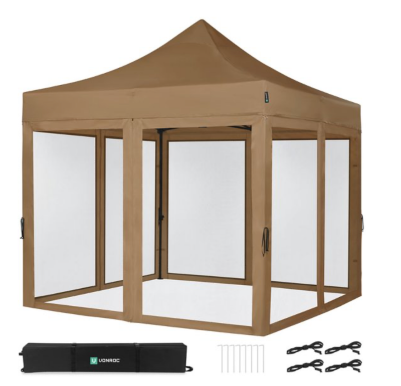Nr. 10 Beste partytenten: VONROC Easy-Up Partytent - 3x3 m - Premium easy-up Partytent - Set incl. Zijwanden met Muggennet - Modulair Ontwerp – Opvouwbaar – Waterdicht – Stalen Frame - 50+ UV Bescherming - Incl. Opbergtas - Beige
