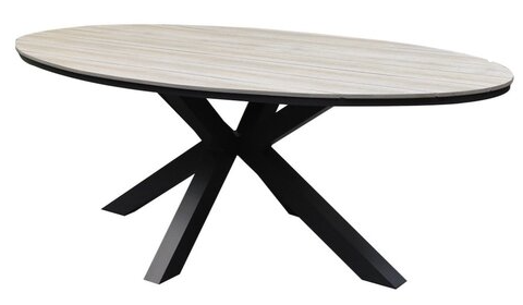 De Salvador tuintafel is een echte eye-catcher! Het fraaie ster-vormige aluminium onderstel en het ovalen tafelblad geven deze tuintafel een unieke uitstraling. Er is aan deze tafel plaats voor vier tuinstoelen.